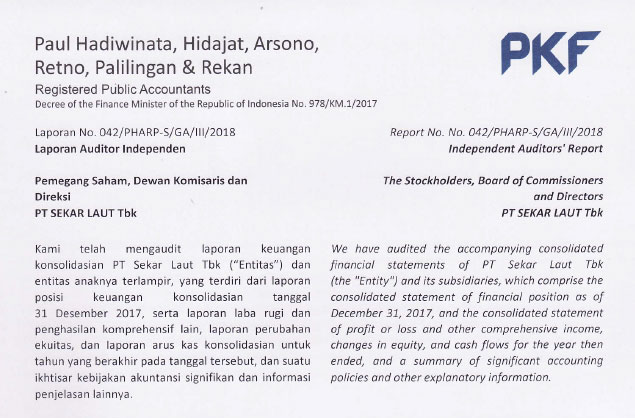 Bisa Anda lihat, SKLT menggunakan jasa auditor KAP Paul Hadiwinata, Hidajat, dan Rekan atau disingkat (PKF) yang notabene bukan termasuk KAP The Big Four. Dengan demikian, maka nilai variabel reputasi auditor SKLT adalah 0.