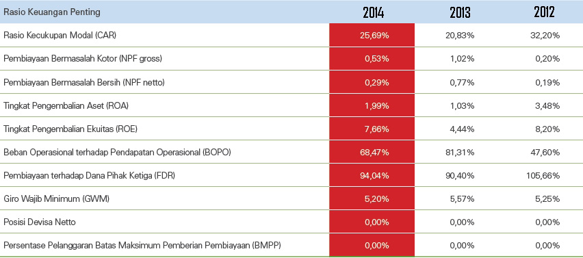 Tabel Rasio Keuangan Penting Bank Panin Dubai Syariah tahun 2012, 2013 dan 2014